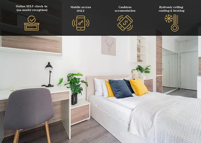Das 4-Sterne-Hotel Spirit Apartments By Firsthost Budapest liegt in unmittelbarer Nähe vom Szantal Studio, und zwar einen 5-minütigen Spaziergang von hier entfernt. Im ganzen Gebäude wird WLAN angeboten und ein privater Autoparkplatz steht ebenfalls vor Ort zur Verfügung.
